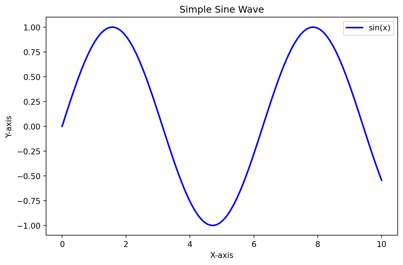 ax.plot(x, y, label= 'sin(x)' , color= 'blue' , linewidth= 2 )