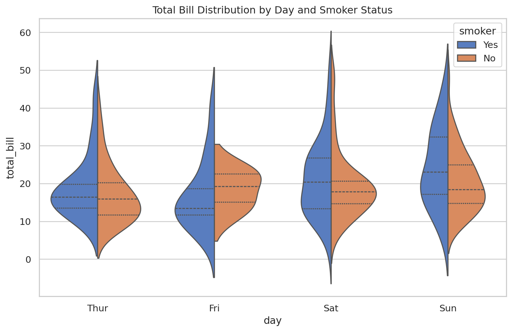 当箱形图(Box Plot)不足以展示数据分布的细节时,小提琴图是绝佳的替代品。它将箱形图与核密度估计(KDE)图相结合,不仅展示了数据的四分位数,还通过外部的形状展示了数据的完整分布密度,尤其适合于比较多组数据的分布形态。